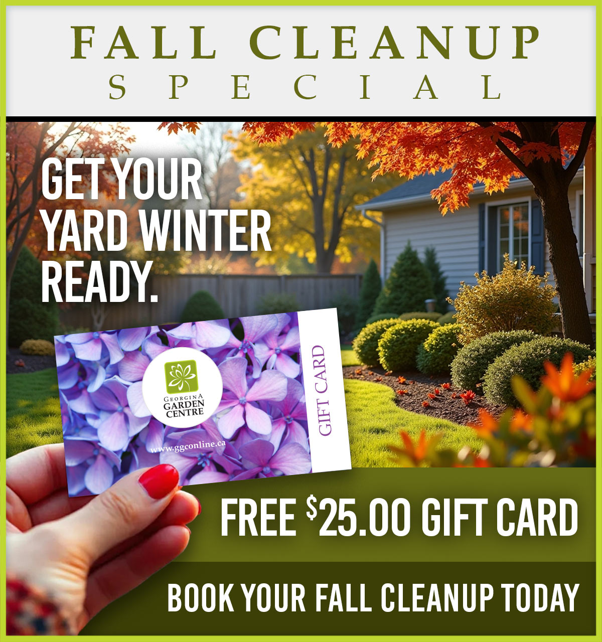 Book your fall cleanup today and receive aFREE $25 Georgina Garden Centre gift cardfor your spring planting.